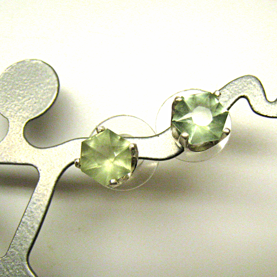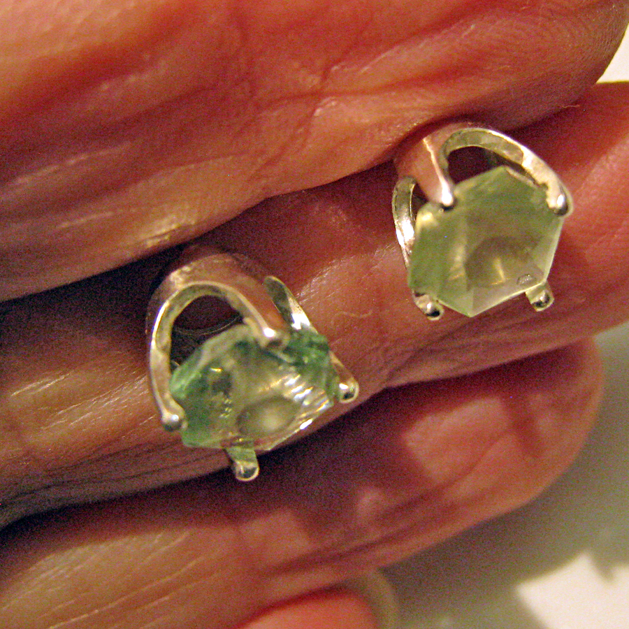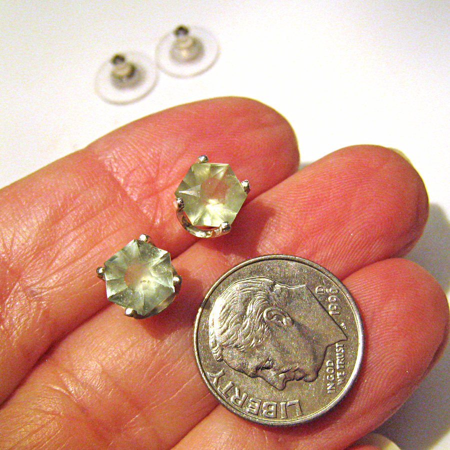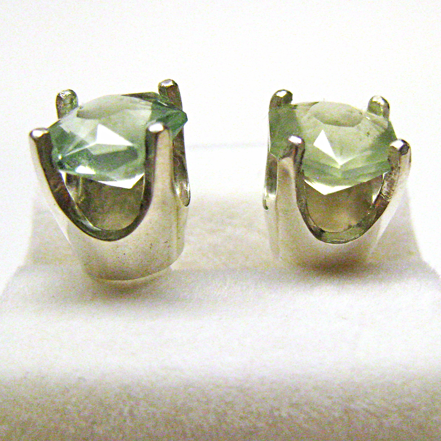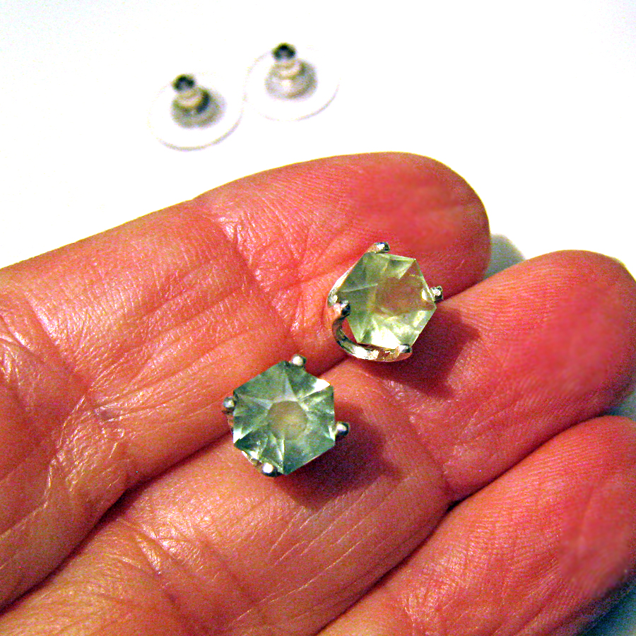 Natural, untreated aquamarine (see pic of host rock) earrings weigh approx. 2.15 cts and measure just under 7mm. The raw aquamarine crystal was found in Africa. Both gems cut in our TolpaDesign studio from the same mineral specimen using the "Harmonious Hexigon" cut. Set in sterling silver. Ear backs included. Shipped promptly, insured and gift boxed. We use PayPal for shipping and payment.